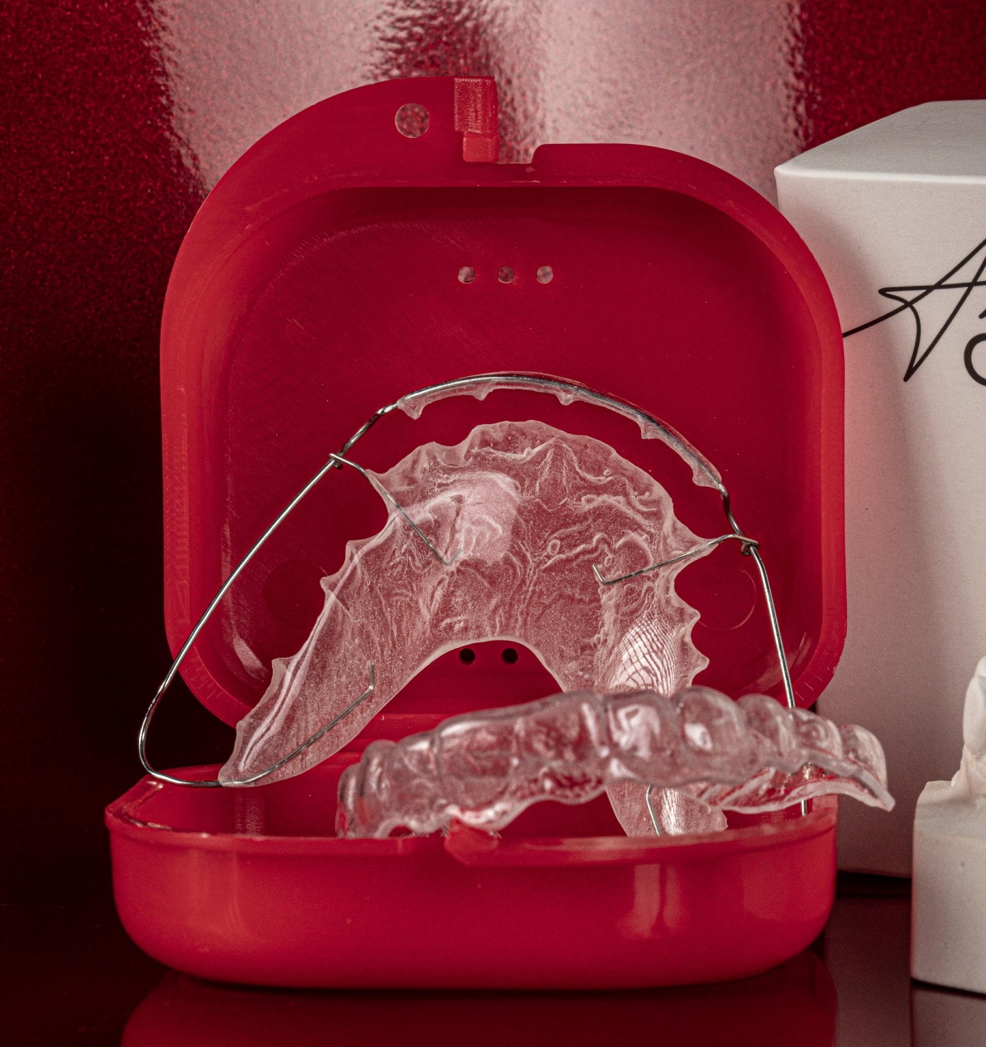 Trong nha khoa, để duy trì vị trí của răng sau khi điều trị chỉnh nha (niềng răng), khí cụ duy trì sẽ được làm riêng cho từng bệnh nhân ,sau khi tháo mắc cài.