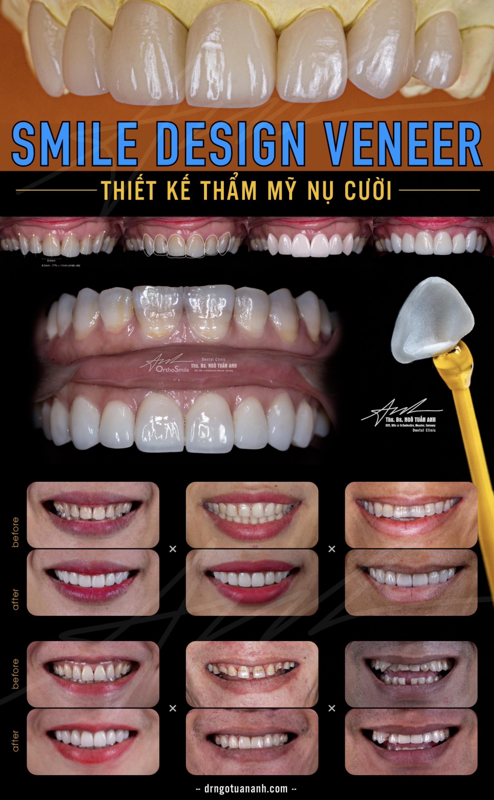 SMILE DESIGN dựa trên các thông số đánh giá tương quan giữa răng-nướu-môi-khuôn mặt của từng người để đưa ra mô phỏng (hình dạng, kích thước, vị trí) răng sứ trong tương lai.